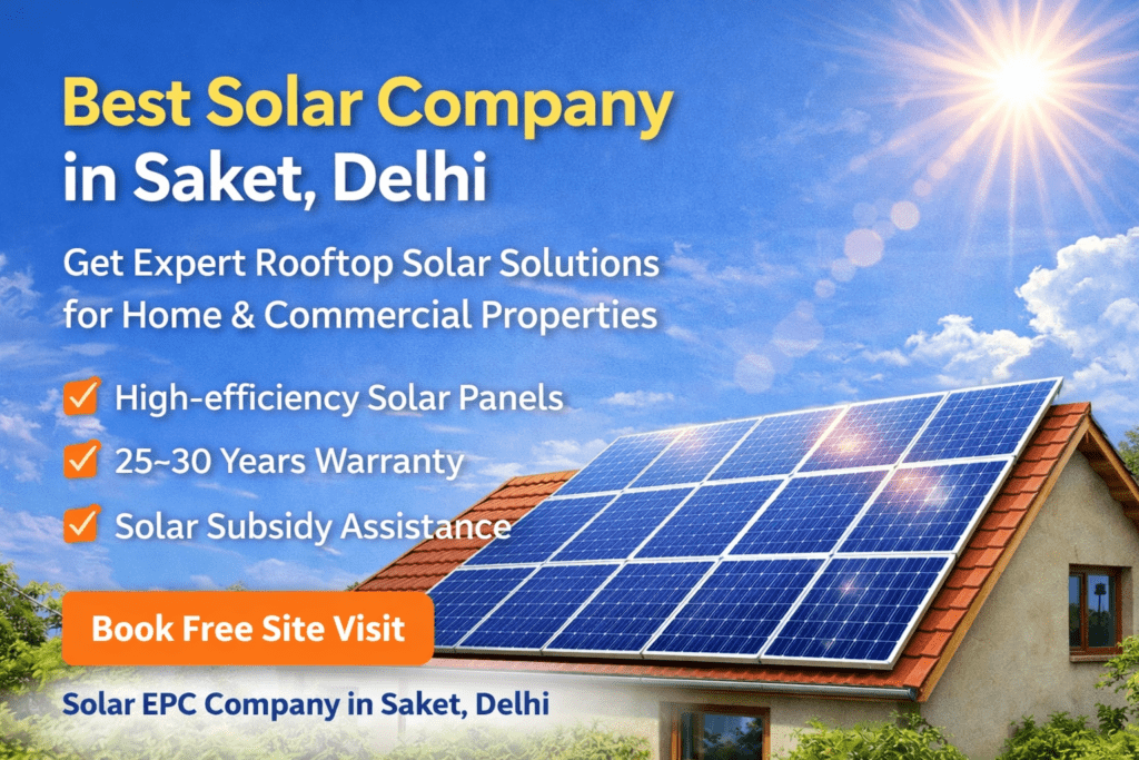 Looking for the best solar company in Saket, Delhi? We are a top solar company delivering reliable and cost-effective solar solutions for residential and commercial properties. As a leading solar EPC company, we provide complete end-to-end services – from site survey and design to installation, net metering, and maintenance.