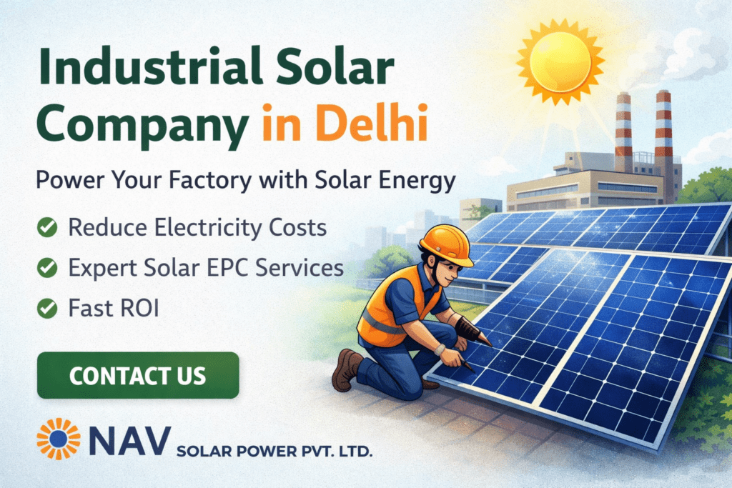 Looking for a trusted industrial solar company in Delhi? Nav Solar Power Pvt. Ltd. helps factories, warehouses, and industrial units reduce electricity costs with high-performance rooftop and ground-mounted solar systems.